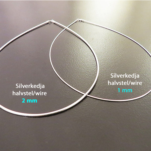 En halvstel silverkedja utan hänge. Silverkedjan (halvstel/snake) är 1 mm bred och finns i tre olika längder (40, 45 och 50 cm).